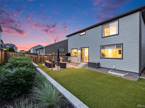 Better Than New - Energy-Efficient, Stylish, and Move-In Ready! Welcome to this spacious 4-bedroom, 3-bathroom home that blends modern comfort with smart, energy-saving features. This home includes owned solar panels, a Rachio smart sprinkler system, a low-maintenance astroturfed backyard with rubber mulch, and spray foam attic insulation—all designed to save you money and enhance year-round comfort. Step inside to discover a flexible front room ideal for a home office or living space, a convenient powder room, and a bright, open-concept family room featuring a cozy gas fireplace and elegant engineered hardwood flooring throughout. The chef-inspired kitchen boasts a large quartz island, a walk-in pantry, and ample space for entertaining. Upstairs, the spacious primary suite offers an oversized walk-in closet. Three additional bedrooms, a versatile loft, and a conveniently located laundry room provide plenty of space for family and guests. Storage is abundant throughout the home. Enjoy Colorado's beautiful seasons in the professionally landscaped backyard, complete with a custom paver patio--perfect for summer barbecues and evening relaxation. The unfinished basement is ready for your personal touch, already pre-plumbed for a bathroom and offering additional crawl space storage. Additional highlights include a whole-house humidifier, tankless water heater, storm door, ceiling fans, and a brand-NEW ROOF installed in June 2025. The location is ideal—just 25 minutes to both Downtown Denver and Denver International Airport, 15 minutes to the Denver Tech Center, and only 5 minutes to Buckley Air Force Base. Plus, it qualifies for a 1% interest rate reduction for the 1st year with the preferred lender!