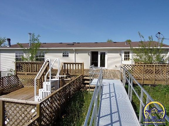 Nice quiet country setting just outside of Mayetta. Newer manufactured home built in 2003 on 3.87 acres. Home has 3 bedrooms, 2 baths, basement, a fireplace in the main floor family room, 1,560 finished sq ft on main level, main floor utility room, full basement, an above ground pool with a great deck and best of all a 30 x 50 heated outbuilding/garage. This is what you are waiting for. Don't delay.