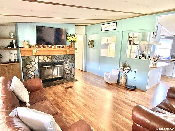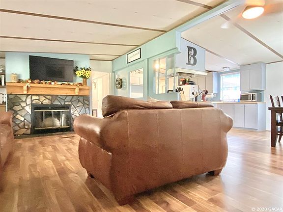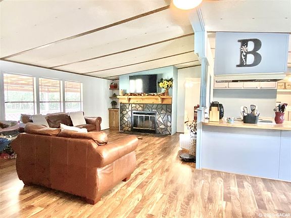 Don't miss this one! Very well maintained 3BR/2BA Mobile Home on 6 beautiful acres. Large front porch, perfect for relaxing and watching the sun set. 112' x 30' pole barn to park your boat, RV, or horse trailer, could easily add stalls. Partially enclosed with a closed building/room/workshop inside. This property has the most beautiful oak trees!! Located between Ocala and Gainesville, close to area lakes for fishing and swimming. Bring your horses, cows and other 4 legged family.