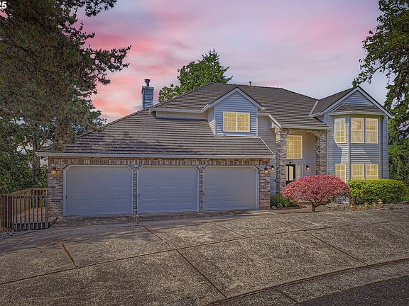 Elegant 5-Bedroom Home with Views, Privacy & Prime Location.This beautifully maintained residence nestled is on a quiet cul-de-sac in one of Beaverton’s most desirable neighborhoods. This exceptional home sits on nearly a ¼-acre lot. The foyer opens to a formal living room with a cozy fireplace and an adjacent formal dining room, perfect for hosting gatherings. The gourmet kitchen features an expansive island, abundant cabinetry, and a bright eat-in breakfast nook, all seamlessly connected to a spacious family room. Check out the integrated pet feeding in the island. French doors lead to a multi-tiered deck, ideal for outdoor dining and relaxation, featuring beautiful views of the surrounding territory. __The main level includes a large three-car garage with a workshop, utility sink, a hard wired Tesla charging station, and a custom lift system for upper-level storage, offering both convenience and space.___Upstairs, the luxurious primary suite boasts a spa-like bathroom with dual sinks, a soaking tub, a large walk-in shower, and a massive walk-in closet. A connected nursery provides easy access for little ones. Two additional bedrooms share a well-appointed bathroom with dual vanities and a shower/tub combo. The upper-level laundry room adds everyday convenience.___The expansive lower level includes a flexible multipurpose room (perfect for fitness, ballet, or barre workouts), a private media room, a guest bedroom, and a full bathroom. An additional flex room with its own half bath and walk-in closet offers endless possibilities. Step out onto the covered lower deck to enjoy a spacious hot tub and serene views.___Other highlights include:-Office alcove with north-facing views-Direct access to hiking trails via a gated, fully fenced backyard- Durable 50 year recycled rubber roof -Fresh interior & exterior paint and meticulous maintenance throughout make this home move in ready.