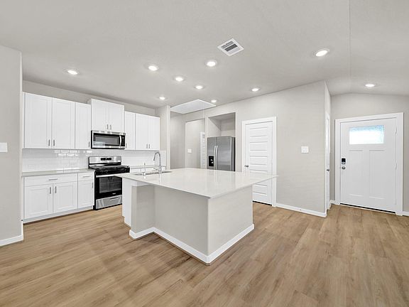 MOVE IN READY - Never-lived-in single-story 3 bedroom, 2 bath home with 2-car garage located in the Mavera community. Open-concept layout with kitchen island, kitchen open to family room, and new Whirlpool appliances included (refrigerator, dishwasher, microwave, gas range). Primary bedroom with en-suite bathroom featuring double sink and separate shower with adjoining walk in closet. Secondary bedrooms are sized well featuring carpet and window coverings. Laundry room in home with full size washer and dryer. LOWER utility bills with Energy Star appliances, LED lighting, high-efficiency HVAC (13+ SEER), spray-foam insulation, insulated Low-E windows, and tankless on-demand water heater. Spacious fully fenced backyard with no back neighbors. Mavera subdivision offers a resort-style pool, splash pad, pavilion, cabanas, pocket parks, and walking areas.