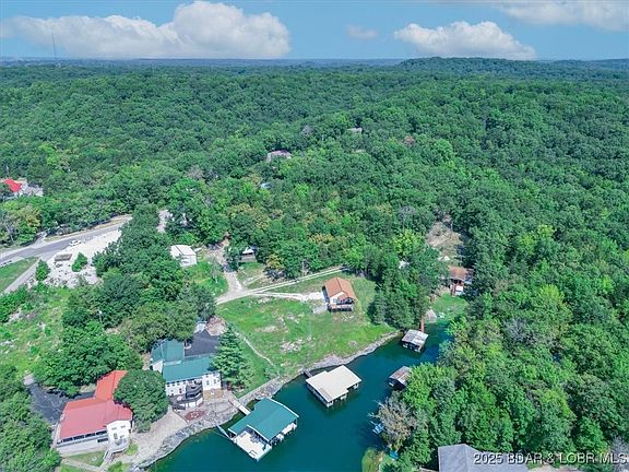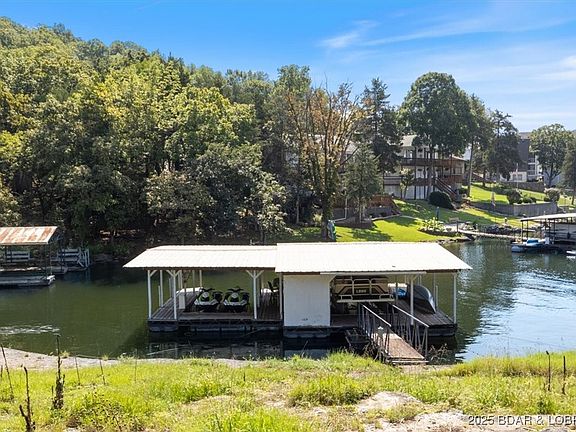 This is a unique LAKE FRONT property with a little over 200' of water frontage. It consists of a 2 well dock, pontoon boat with lift, and an updated 3 bed 1 bath furnished home. Situated on a double lot in the back of a deep water cove at the 4MM of the Gravois Arm at the Lake of the Ozarks. 2 wells and a septic on the property. You also have access to the Lucky Point boat ramp for a small annual fee. This property is currently used as a STR however would make a great family lake home or full time residence.