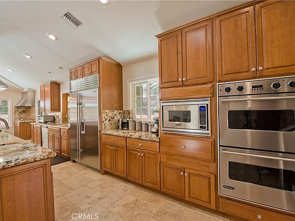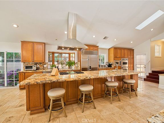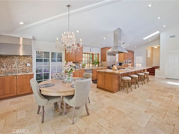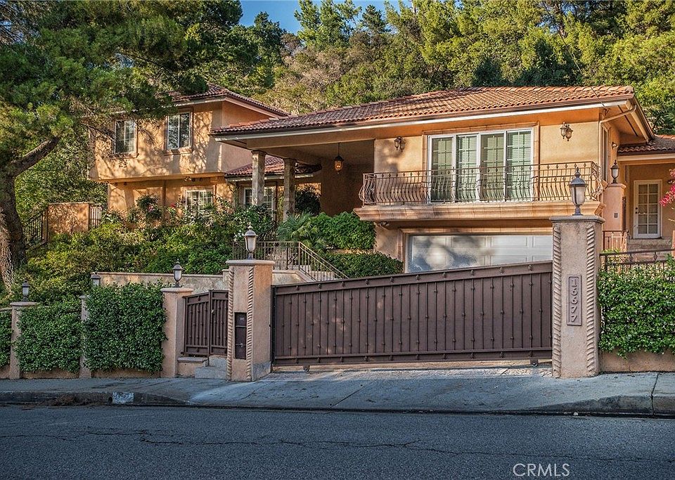 Welcome to this exquisite, gated Tuscan villa, gracefully poised in the picturesque hills of Encino.  A showcase of timeless architecture and refined craftsmanship, this residence is defined by its grand open-concept living spaces, soaring vaulted ceilings, gleaming wood floors, and elegant stone finishes throughout. At the heart of the home lies a spectacular family-style chef’s kitchen, complete with an expansive center island, generous breakfast bar, casual dining area, and custom cabinetry. The kitchen is fully equipped with professional-grade Viking and Sub-Zero appliances, including dual ovens, built-in refrigeration, microwave, cooktop with griddle, and even an indoor BBQ — all seamlessly connecting to the fabulous family room, creating a culinary dream designed for both everyday living and grand entertaining. Additionally spread out at the central entertainer's bar with wine fridge, relax in the spacious formal living room with stunning stone fireplace or enjoy intimate dinners or extended family celebrations in the spacious formal dining room. Retreat to the opulent first-floor primary suite, a true sanctuary offering a romantic fireplace, private sitting area, direct access to the rear grounds, and a lavish spa-inspired bath. Enjoy a jetted soaking tub, dual-head shower, oversized vanity, sauna, and a custom walk-in closet fit for the most discerning tastes. Four additional bedrooms provide ample flexibility — two of which can serve as secondary primary suites, a theater, or fabulous game room! Step outside and decompress in the ultra-private rear oasis, where tranquility meets resort-style living. The serene patio overlooks the grassy play area and sparkling pool and spa with cascading waterfalls, surrounded by lush mature landscaping and peaceful hillside views — the perfect setting for relaxation or entertaining under the stars. Additional highlights include a gated motor court with stone-tiled drive, convenient Westside access and located within the Lanai School District. This remarkable estate blends warmth, sophistication, and functionality — a true Tuscan-inspired masterpiece you will surely not want to miss!
