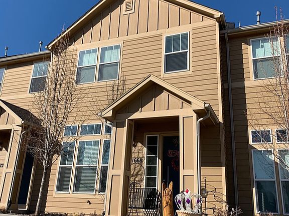 Look out your front windows and see open grassy areas that are maintained by the community when you make 1668 Cherokee Mountain Circle your home. Convenient to I-25, the Castle Rock Hospital, and downtown Castle Rock. This airy floor plan delivers 3 bedrooms, 2.5 bathrooms, tiled traditional dining room, master suite with walk-in closet, welcoming living room with fleck carpeting, cheery kitchen with breakfast island for snacks, granite counters in kitchen, electric self cleaning range, built in microwave, garbage disposal, pantry, dishwasher, refrigerator, first-floor laundry closet, home office, 2 car attached garage, covered front porch. This home has been pet free. Come enjoy well proportioned space in this 3 bedroom townhome!