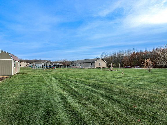 Nestled on a serene 1-acre corner lot in a hidden country subdivision, this adorable ranch offers scenic open-sky views and breathtaking sunsets. The spacious yard, partially fenced for pets, invites endless possibilities--whether it's adding an extra garage or simply enjoying the expansive outdoor space. Inside you'll find an inviting open-concept design where the oversized living room seamlessly connects to the kitchen. The kitchen boasts excellent flow, a functional island with barstool seating, and ample space for a large dining table. Sliding doors lead to the rear deck, the perfect spot to relax and savor those peaceful country views. Each of the three generously sized bedrooms features brand-new carpeting, including the main bedroom with a private full bath and walk-in closet. The insulated and finished garage provides versatility, and can easily be heated. Back outside, enjoy cozy evenings around the fire pit and keep things organized with the convenient storage shed. The peaceful environment of this homes setting cannot be understated...see for yourself.