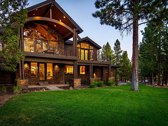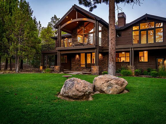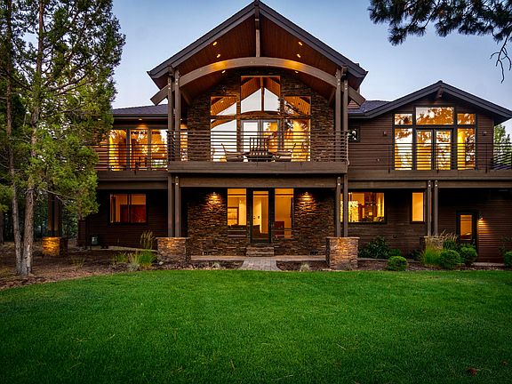 Timeless architectural beauty on Awbrey Butte. Enjoy gorgeous sunsets and Cascade Mountain views! Expansive 1.5-acre flat lot with immaculate landscaping, walkways and water features. Awe-inspiring two-story glass + stone entry leads up to vaulted great room. Spacious yet warm w/hardwoods, fireplace, chef's kitchen, oversize island and huge pantry. XL paver decks with views off multiple rooms creates seamless indoor-outdoor living and entertaining. Main floor STUNNING Primary suite w/walk in closet, fireplace, gorgeous bath, and doors out to deck. Downstairs lower-level features bonus room w/wet bar + doors out to park like yard and patio. Additionally: 3 guest bedrooms (2 ensuite) + another full bathroom, den/office and laundry. Heated 3 car garage w/epoxy floors + EV outlet + central vac. Incredible all-season property: Amazing in summer & Perfect in winter with spacious interiors and cozy fireplaces. All items in home included. Super low property taxes! See attached features list!