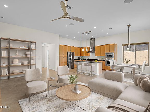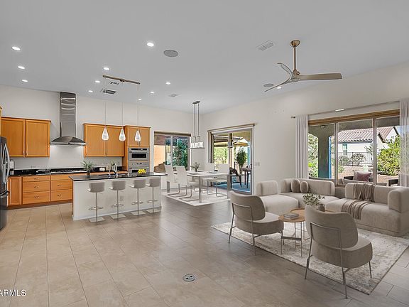 Imagine waking up in a sunlit, stylish space that feels both modern and comfortable — where every detail has been thoughtfully chosen for beauty and ease. Sip your morning coffee on the covered patio, then grab your golf cart and head to the clubhouse for 18 holes, a game of pickleball, a swim or social event. Cook, entertain, and gather in the well appointed kitchen with island. When it's time to focus, your private office awaits. Here, in Goodyear's most desirable active adult community, you're surrounded by resort amenities, friendly neighbors, and a city on the rise, complete with new spots like Trader Joe's and Buc-ee's just minutes away. This is refined living with a relaxed edge that's designed for those who appreciate style, comfort, and connection. Get a look before it's gone! Also, be sure to ask to see the list of Improvements & Upgrades like superior No Salt Water Conditioner and Heat Pump HyBrid Water Heater!!