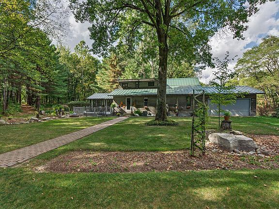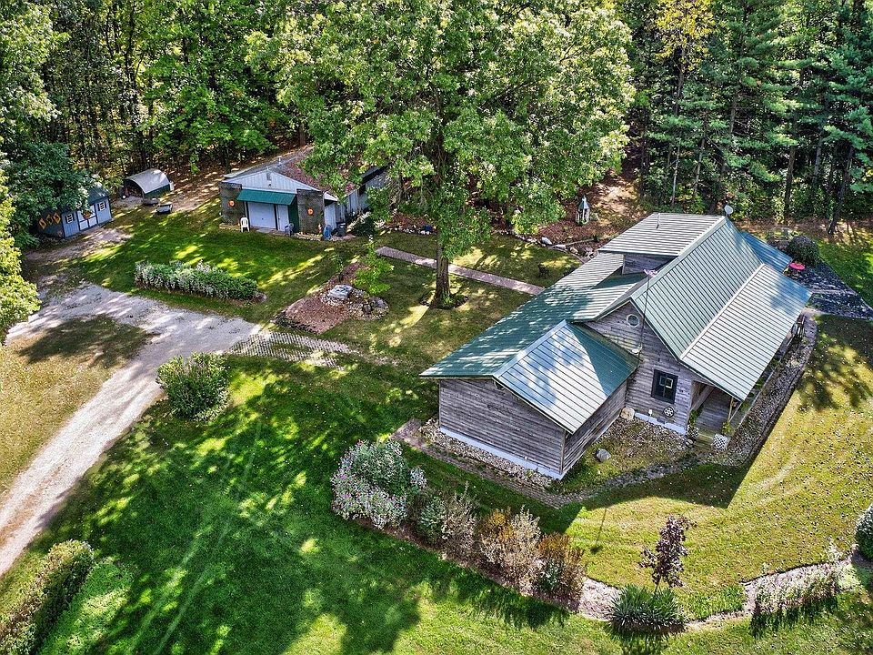 OPEN HOUSE SUNDAY, OCTOBER 23rd from 1-3 PM!!This charming one-owner property was built with love and beautifully maintained over the years. Situated on just over 16 peaceful acres, this delightful retreat truly has it all. From the picturesque pond with a footbridge leading to a small island, to the storybook root cellar straight out of The Hobbit, every inch of this property radiates character and care. The inviting home serves as the “homestead” of the property and features a Walton-style front porch that welcomes you inside. Step into an open and comfortable layout with real hardwood floors, a spacious living room, and a country kitchen with granite countertops and a cozy dining area—perfect for gatherings large or small. Two spacious bedrooms and a main-level mudroom/laundry room add everyday convenience, while the upstairs loft area with half bath offers extra space for guests, a hobby room, or home office. Need more room? Then the glorious 4 season room is a wonderful addition where you can let the sunshine in! Outside, you’ll find a heated pole building with a furnace, wood-burning stove, and half bath—ideal for projects, hobbies, or extra workspace. The generator stays, and the home offers 100-amp service while the outbuilding provides 200-amp service for all your tools and equipment. A handy storage shed adds even more room for your overflow gear. From sunrise over the pond to evenings on the porch, this is truly an “over the rainbow” dream come true—a place where peace, beauty, and practicality meet. All new mechanicals, too! Outbuilding is 40 x 30 with additional backroom 20 x 16 and a lean-to that is 24 x 10, plus a shed that is 20 x 16! Welcome home!