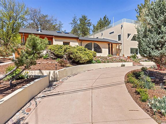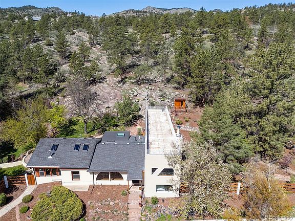 One mile outside of the quaint mountain town of Lyons, Colorado, on coveted Apple Valley Road, sits this beautiful secluded home. The backyard borders a 24-acre conservation easement for ultimate privacy. Nestled in the Napa Valley-like canyon in uncorporated Boulder County, this unique gem sits on nearly 3 acres with gorgeous natural granite outcroppings, Lyons sandstone, lodgepole pines, indigenous botannicals, fruit trees including: apples, pears, cherries, apricots, plums, chestnuts, mature lavender plants, & herbs woven throughout. The 9 sunlights bring the forest & mountain views into your space. The meditation trails throughout are stunning. The Frank LLoyd Wright-esque organic architecture of the home also features several recent remodels that include: a new boiler system, sunroom gas stove, Breckenridge granite counters, designer stainless steel appliances, quartz counters in all bathrooms, acacia & luxe vinyl floors throughout, new exterior stucco, windows, cistern pump, french drain, sprinkler system, and much more. Plenty of acreage to expand home, dry pasture/barn for horses, or a full garage. Use of the river in Lyons for swimming, fishing, or floating is permitted & leads to Laverne Johnson Park by duckie raft, kayak, or inner tube. House has 750 sq ft. special irrigation exterior permit, 2025 Septic Smart Pass, 1200 gal cistern, well (free water), low utility costs, and fire hydrant within 50ft. No HOA.