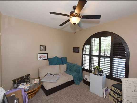 Don't buy new, this Palo Verde resale home is a great value! This home is in a great and still new neighborhood but now the landscaping is mature. This is a very popular floor plan, wonderful grand entry way, open living area to the kitchen, nice kitchen island and four bedrooms. All windows have custom shutters. The landscaping in the back yard is a beautiful oasis, the owners spent about $7K which is a big bonus for the buyer. Enjoy the pergola with a shade screen and bring your marshmallows for the fire pit!