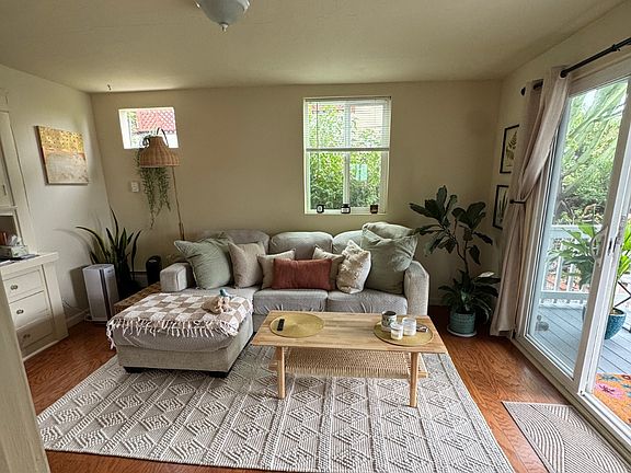 The apartment has a private deck with a view of the shared back yard. A Beautiful garden setting to enjoy.There is a small second bedroom that could be used for an office. It is the downstairs unit of a duplex. There are built in victorian cupboards in the living room. The kitchen was recently upgraded. You do HAVE TO WALK THROUGH MASTER BEDROOM to get to the bathroom . Please provide your credit score, income, employment , who will be living with you and your pets in the Zillow system before tour. . Then speak to the agent on the phone to set up an appointment. . It is a great neighborhood , quiet and near restaurants. This is a must see unit!