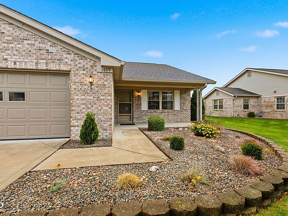 Beautifully maintained 2 bedroom, 2 bath all-brick home in the desirable 55+ Southern Green community! Offering 1,617 sq ft of comfortable living, this home features a bright and open layout with a cozy gas fireplace in the living room, stained trim, and classic 6-panel doors. Enjoy relaxing in the screened-in porch or the separate sunroom overlooking the backyard. The kitchen includes all appliances that stay, and the spacious 2-car garage provides great storage. Conveniently located near grocery stores, restaurants, and I-65 for easy access to everything you need. Low-maintenance living at its best!