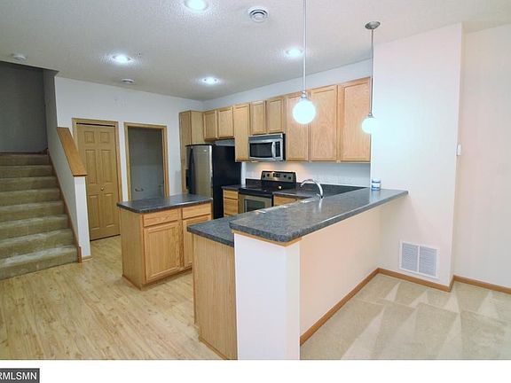 Spotless Points West town home tucked in heart of neighborhood. Open LR/ DR with gas fireplace. Kitchen has newer stainless appliances and an open breakfast bar area. bath near utility room off double garage. Upper level has nice loft area and two ample sized bedrooms with the master have a walk through bath and large walk in closet. There is a ballfield and park less than a block away and access to Hwy 212 is a breeze. Close to Chaska Community Center and miles of trails and city parks.