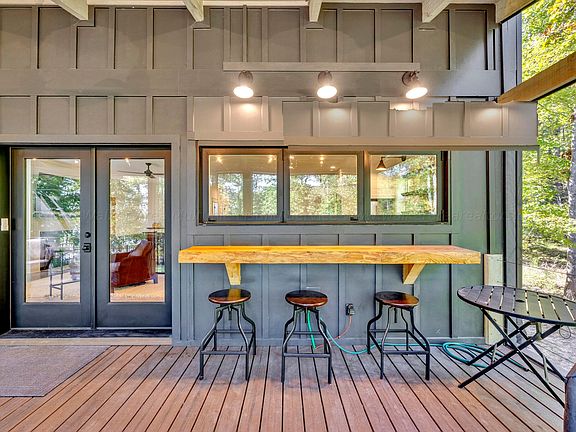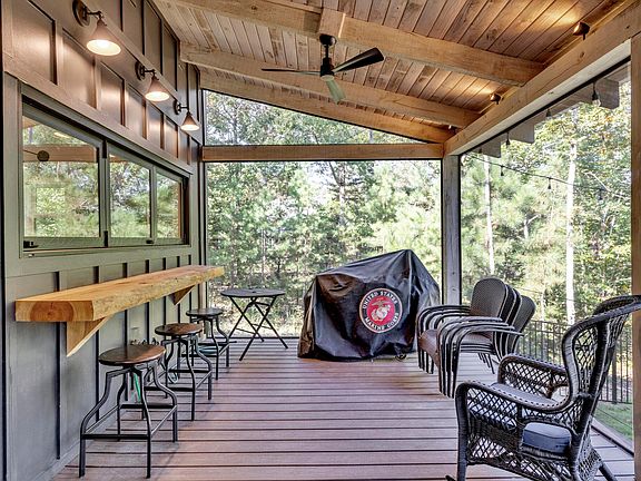 ATTENTION AVAILABLE! Seller will consider a concession towards a boat dock with an acceptable offer. Built by Cornerstone this Barndominium style home sets on year round water on a gentle lot. 4/5 BR 3 BA open floor plan, kitchen has accordion windows to the screened porch, gas stove, good pantry, FP, master on the main, 2nd upstairs den, spray foam insulation, large storage, fenced lake side yard, sprinklers, starlink internet, Has a swim pier, permitted for 2 slip dock