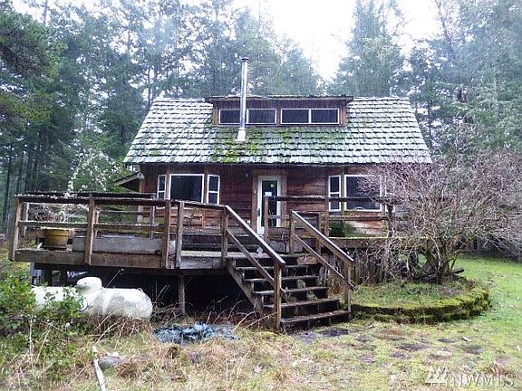 Rustic, Remote Cabin in the woods 1+ bedrooms, 1-3/4 bathrooms, large open kitchen, eating area, living room, loft area w/private 2nd level sun deck, wrap around decks. 3.7 acres in Central San Juan Island approx. 20 minutes from Friday Harbor and ferry. Home improvement imagination needed for updates, repairs. needs new appliances and flooring throughout. Sold as-is with no repairs or modifications financing is not available, Cash Only sales through on-line auction site. Great Value!