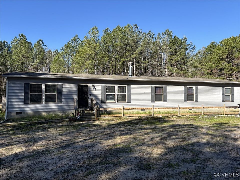 Discover the blend of comfort and privacy in this spacious manufactured home, nestled on 5.4 serene, wooded acres just 1 mile from interstate 95. The open concept layout creates a seamless flow between the living, dining and kitchen areas-ideal for both entertaining and everyday living. You will love the fenced rear yard offering added privacy and a safe space for pets or outdoor activities. All appliances will remain with the home, making it move in ready. Whether you are relaxing outside, exploring the wooded acreage or appreciating the convenience of quick interstate access, this property offers the best of both worlds-privacy and accessibility. Don't miss out on this opportunity to own your own private retreat. This is a short sale.