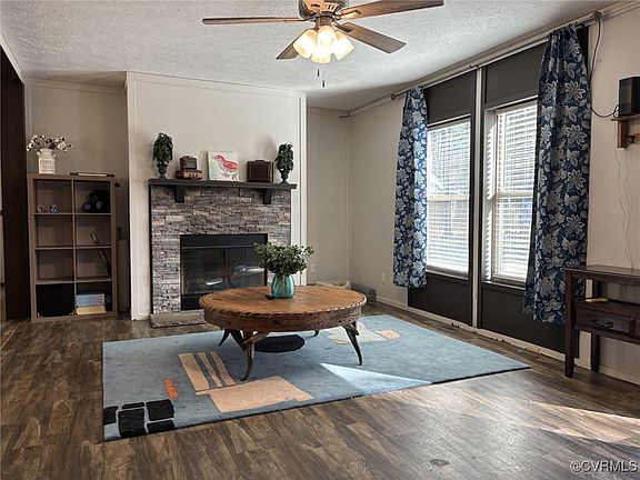 - Fireplace features: Factory Built, Stone, Wood Burning