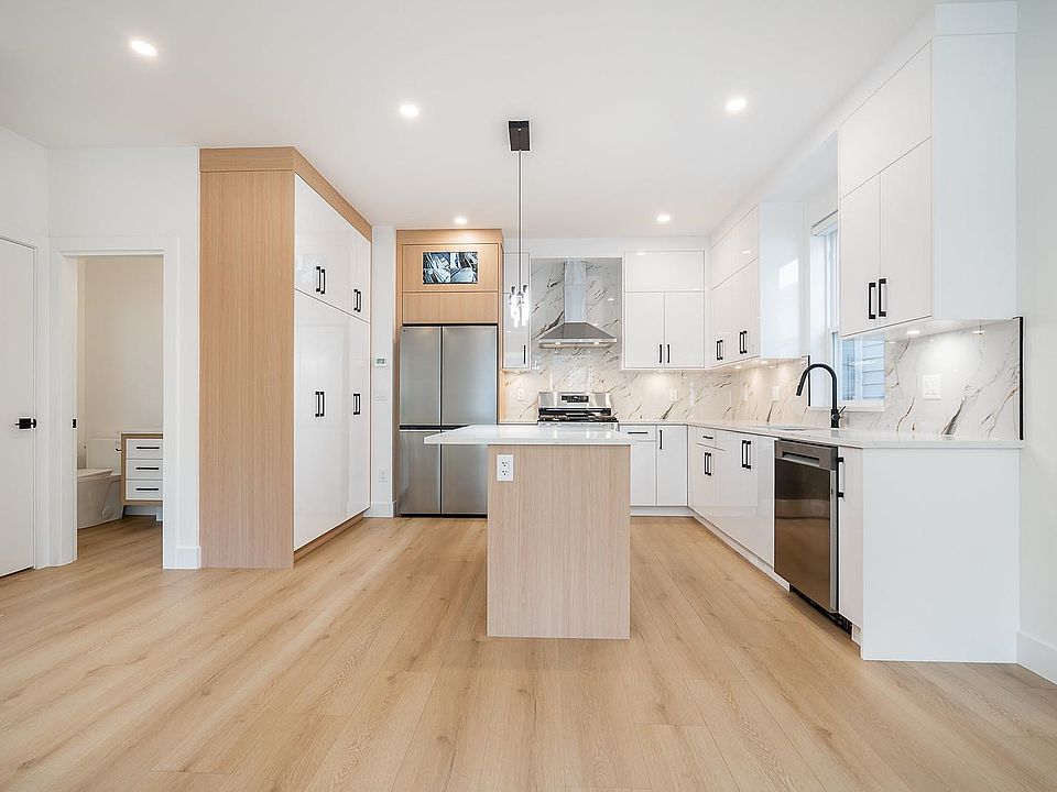 Presenting ALARA II by Symbolic Construction Group. This exclusive collection of front and back duplex homes offers luxury living without the burden of STRATA FEES. Each front unit is a 4 bed, 4 bath residence, thoughtfully crafted w/high-end finishes, featuring 9 ft ceilings through out, expansive windows for abundant natural light, quartz countertops, premium appliances, built-in entertainment unit & Security, AC & energy efficient natural gas heating built with STEP CODE 4 in mind. Tiles baths & elegant accent walls add a sophisticated, modern touch. Enjoy 3 spacious levels of living, complete w/a large recreation room, a full bathroom & an additional bedroom-perfect as a mortgage helper! The detached garage is equipped w/220 volt power. Don't miss the chance to secure your dream home!