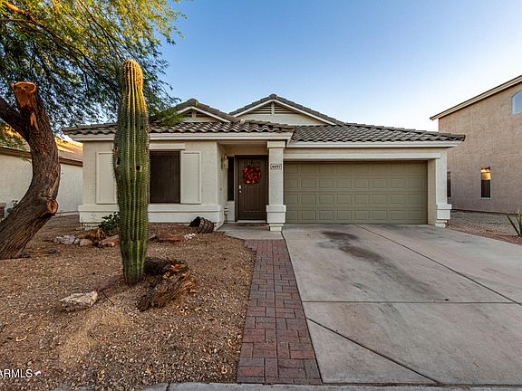 Fantastic home with POOL in the master-planned Community of Canyon Trails! Offering 3 beds, 2 baths, 2-car garage, & a low-care landscape. Discover an inviting interior showcasing vaulted ceilings, tons of natural light, neutral paint, and wood-look flooring w/carpet in bedrooms. You'll love the functional floor plan featuring a formal living room and a separate dining & family room w/sliding doors to the back! The impressive kitchen boasts SS appliances, ample white cabinetry & counter space, a walk-in pantry, track lighting, and an island w/breakfast bar. Enter the main bedroom to find a walk-in closet & a private bathroom for added comfort. The backyard is an entertainer's delight! With a covered patio & sparkling pool, this gem promises year-round enjoyment. This gem won't disappoint!