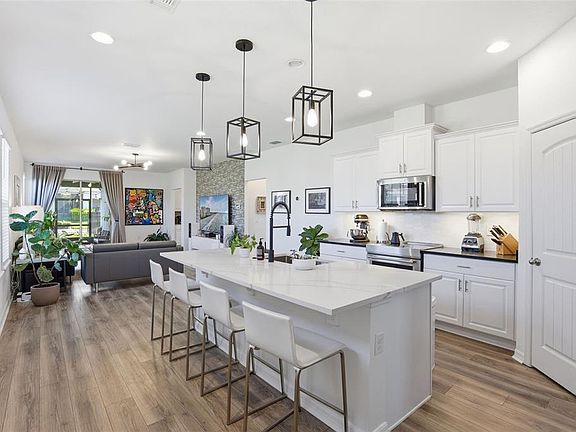 Welcome to this beautifully upgraded home located in the highly sought-after Waterleigh community in Winter Garden, Florida. This residence combines modern finishes with thoughtful design, creating a warm and inviting atmosphere throughout. The fully renovated kitchen features quartz and black granite countertops, a Kraus deep culinary sink with a Moen touchless faucet, premium KitchenAid appliances including an induction range, convection microwave, and counter-depth refrigerator, along with soft-close cabinetry and a spacious pantry. High-quality LVP flooring runs throughout the home with no carpet, complemented by all new light fixtures for a cohesive and elegant look. The upgraded primary suite offers a custom closet with a chandelier, adding a touch of luxury. The home also includes a whole-home salt-free water softener and carbon filtration system, security cameras, gutters, and a termite bond for peace of mind. The upgraded garage features epoxy flooring, suspended storage, built-in shelving, and an additional refrigerator, while the exterior includes a paved garbage can pad and recently sealed pavers. Outdoor living is equally impressive with a screened-in porch, extended paved patio, and an oversized yard with ample room for a pool, all perfectly positioned for full sun exposure and natural light throughout the day. The Waterleigh community offers resort-style amenities including pools, fitness centers, walking trails, playgrounds, and a clubhouse, all within minutes of shopping, dining, top-rated schools, and major highways. This home is move-in ready and offers a perfect blend of style, comfort, and convenience in one of Winter Garden’s premier master-planned communities.