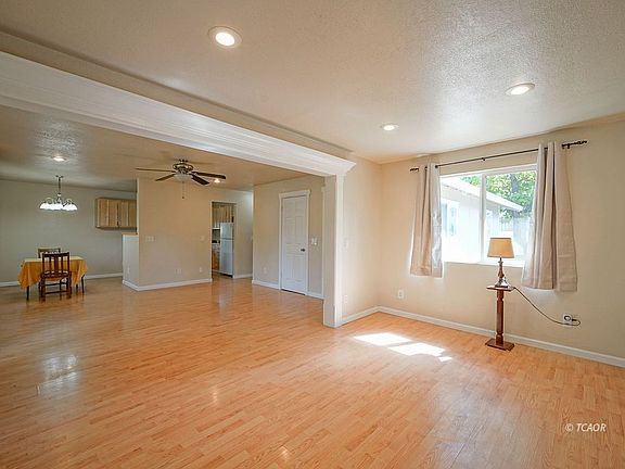 Upgrades A-Plenty; Move-in Ready ! A welcome surprise with many upgrades: a new roof (2025), energy-efficient heating/cooling, dual pane windows, new doors ( including a lovely french-door opening to a covered patio w/ stamped concrete ). Easy maintenance Laminate flooring through the living, alcove, dining, kitchen, hall, bath, & laundry. New carpeting (2025) in all 3 bedrooms. The kitchen & laundry room feature lovely cabinets & counters. The bathroom includes a new vanity, commode, & lighting. A few classic touches in the home include recessed lighting, upgraded light fixtures, & crown molding. The Living, Dining, & Kitchen layout offers an open flow with picture windows. An Alcove, by the Living Room, offers a 'niche' as a parlor, office space, or what may fit your needs. A laundry room w/ a base cabinet & both interior / exterior access; affords room for a full-size washer & dryer. The fully fenced rear grounds include both tree-shaded & sunny areas. The covered patio is an inviting spot to sit back and savor the open view. Parking w/ easy access to an inviting front entry. Add'l parking option for recreational toys on the side. The home has been recently painted in / out. All that is left? Just move in !