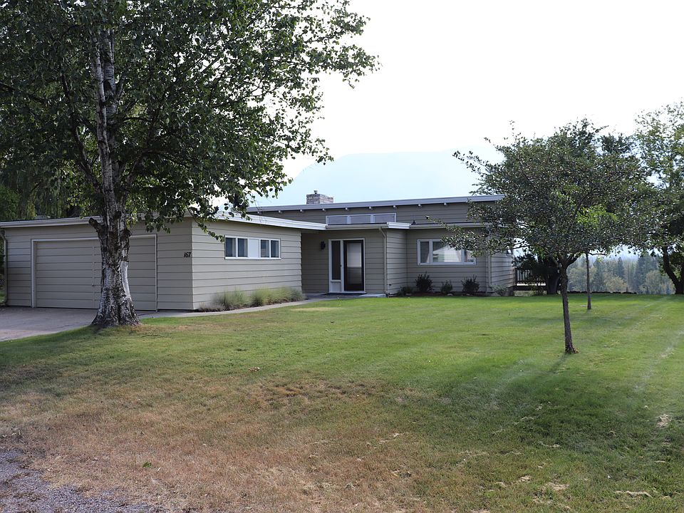 Property offered exclusively by River Grove Rentals LLC, based in Columbia Falls, MT. Please read all written material. This mid-20th century home, built in 1955, is 2200 sq feet with many recent, awesome upgrades, where mid-century meets modern. Upgrades include new flooring through the basement and main levels; there is no carpet. Other upgrades include new window blinds, paint throughout the interior, and bathroom faucet trim. There are 3 bedrooms, one on the main level and 2 in the downstairs level. There are 2 bathrooms, one on each level. Both levels have decent sized living areas, with upstairs have a wood burning fireplace. A mixture of well conditioned original oak hardwood, new vinyl laminate, and linoleum flooring throughout the house. Has a decent sized kitchen, not without its vintage charm, but with some recent modern renovations. The home has gas forced air and electric baseboard heating, through a boiler that was installed in 2024, and water softening system. There are 2 wall-installed A/C units in the upstairs bedroom and living area. Closets are large and there's plenty of storage through out the house as well. There is a large shop room in the basement. There is no washer/dryer in the unit, only washer/dryer hookups, occupants need to supply their own appliances. The home is very well kept, has a great yard with an under-ground irrigation system, with an attached 1-2 car garage. There is no fenced in area, pet breeds are not recommended. The property boasts an epic view from the back deck of the Gateway to Glacier, overlooking Teakettle Mountain and the Columbia Mountain Range. Property is very close to town and other amenities, not to mention a stone's throw away from recreational activities such as the Cedar Flats trail system, and of course Whitefish Mountain Resort and Glacier National Park. Property offered exclusively by River Grove Rentals LLC, based in Columbia Falls, MT. Please read all written material. Leasing terms are as follows: Move-in ready, available now. Long-term leasing, year plus leasing is preferred. Rent is $2,800/month, $2,000 security deposit, all utilities, with the exception of City of Columbia Falls water/sewer, are to be paid by the tenant (Northwestern Energy, Flathead Electric). Owner pays for water/sewer. All other services such as trash pick-up, wifi, etc., are also paid by the tenant. Firm no smoking/vaping policy. Due to the amount of upgrades to the property and there being no fence, pet breeds are not preferred at this time. No oversized vehicles such as trailers, snowmobiles, atvs, etc., there simply isn't room for these items. Tenant is responsible for their own snow removal on the property. Tenant also responsible for lawn maintenance, which includes reasonable irrigation and mowing. There is no lawn equipment on site, occupants will need to supply their own. Tenant screening is required and begins with filling out an application. Please use Zillow to apply for this rental unit. Prospective renters may need to provide a verifiable source of income that is at least 2.5 times the monthly rent. This can be verified through employment paystubs, bank statements, savings, other verifiable sources of income. A credit/background check may be needed; use creditkarma, its free. Please provide current/past landlord references and employment verification. In order to expedite this process, it is recommended that anyone who is seriously interested in renting the property apply through Zillow. Zillow does have an application fee, around $35, and lasts for 30 days. Serious inquiries will be responded to. Please call, text, or message for questions and to set up a showing.
