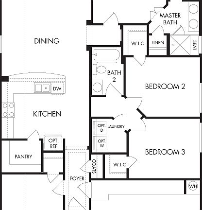 Open concept home with expansive breakfast bar, walk-in closets to solve storage challenges and covered back patio. Modern linen cabinets, ash quartz counters, grey hexagonal tile, light gray carpet, and ivory oak vinyl plank in our Elegant package.
