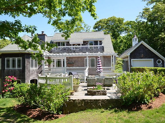 Graceful Vineyard design with a striking view over Lagoon Pond sits atop a gently sloping hill and is just a short walk down the path to the sandy beach below. Renovated in 1988 with new windows, interior doors, kitchen, finished basement, painting, and a cheery gazebo style sun room, more recent new roof and furnace, there are several decks in strategic locations and an enclosed round patio greets you at the front entry. Open sunny layout of kitchen/dining/living that flows into the sunroom and onto the deck...2 bedrooms and full bathroom on first floor and the 2 upstairs share a bath and an exterior balcony. Walk down to the Lagoon Beach for swimming, clamming, or to take in the sunsets. Call Alan for a showing