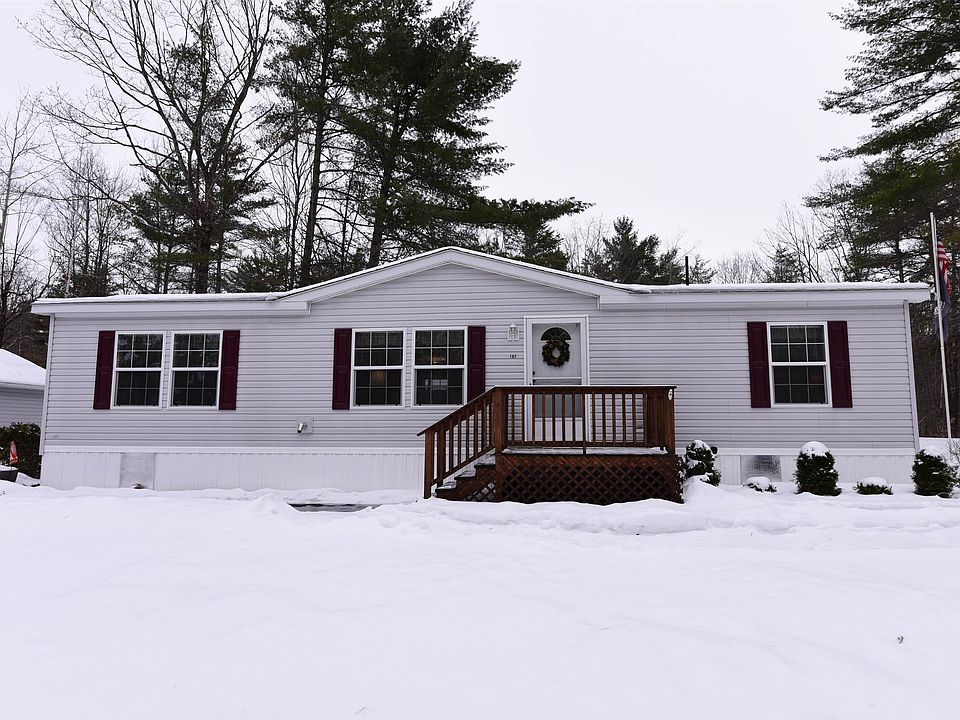 For those seeking comfortable single-story living in Center Conway, this 2003 three-bedroom, two-bath manufactured home is an ideal choice. Set on a quiet, private double corner lot, the home offers many thoughtful updates throughout. The open layout features a spacious kitchen and dining area that flow into a cozy living room, where a Harman pellet stove adds warmth and ambiance. Central air conditioning keeps the home comfortable year-round, while efficient supplemental heating is provided by a Rinnai space heater located in the dining room. The primary bedroom is conveniently located on one side of the home and includes an attached bath for added privacy, while the two additional bedrooms and full bath are situated on the opposite side. Recent updates provide peace of mind and include upgraded PEX plumbing, a newer 40-gallon electric hot water tank, and an asphalt shingle roof. An oversized mudroom, enclosed porch, and detached garage add both functionality and additional storage. Located in the desirable and private 55+ Mountainvale Village Mobile Home Community, this home is perfectly suited for those seeking single level living while still enjoying a convenient location close to the Saco River, White Mountains, shopping, restaurants and all the amenities of the Mount Washington Valley. Don’t wait—schedule a tour today!