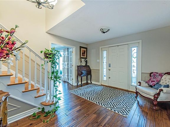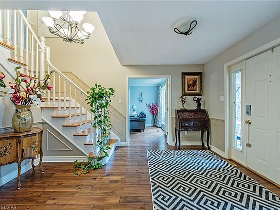 Rare opportunity to own a piece of paradise! This beautiful home is situated on a quiet street and backing onto forest ravine and stream in North London. The bright large foyer welcome you into this stunning 4+1 bedroom,3.5 bath 2-storey home with finished lower level and walkout to the private treed backyard. It features hardwood floor from bottom to top plus tiles in wet areas, main floor office, kitchen with island and granite counter top, sunken family room with gas fireplace and patio door leading to the large deck overlooking the breathtaking landscape, sunroom with cathedral ceiling and two skylines and exit to the deck. Upstairs features a gorgeous master bedroom with walk in closet and 5piece ensuite with a build-in electric heater for a warm bath in the cold winter, 3 more good size bedroom, plus a huge main bath with double sink. The walk out Lower level with new floor (2020) has a bedroom and a full bath, a rec room, and lots of storage, the water treatment system provides the whole house fresh water. It is near schools, parks, trails, Masonville Mall, university hospital, western university, and easy access to downtown London. Houses like this won't be in the market long!