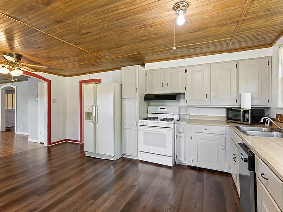 One level cottage style home that makes you feel like everyone is welcome to visit~slow down life and spend a little time on the large covered porch drinking your morning coffee or afternoon lemonade after a long day of planting your own garden~Large living room and kitchen with eat-in area and pantry~beautiful hardwood floors in living room, office and bedroom~Office could double as a 2nd bedroom~tongue and groove ceiling~LVP Flooring in kitchen~a great laundry room that you won't find in most new construction these days~some features of the home have been recently remodeled~detached carport along with an additional covered RV Carport~separate shed~and property is bordered by Whitfield Creek~(could also use as a rental space for RV / Enclosed could be a business plenty of room for ideas) storage for lawn equipment or waverunners for the Kentucky Lake Pick your hobby, the availability is here~have a he shed or she shed that would be a great yard tool and gardening. The workshop is good for projects on the weekend.
