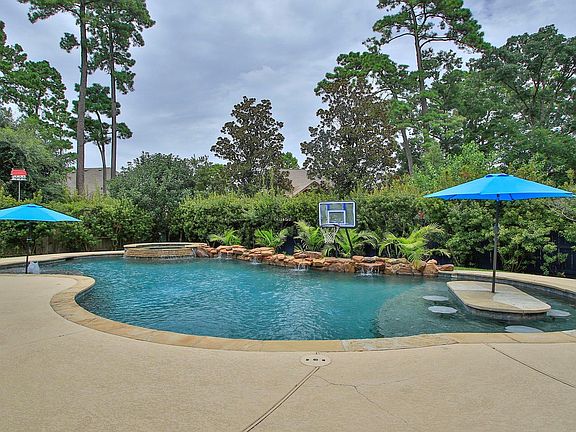 Wonderful 2-story, 4 bedroom, 3.5 bath on cul-de-sac with beautiful 33,000 gallon custom pool in the fast-growing Woodforest Master-planned Golf Community! Luxurious open floor plan, large family room with soaring ceiling, spacious kitchen with granite tops and gas range, formal dining, breakfast nook, plus fireplace & office downstairs. Game room and 3 bedrooms upstairs. Exceptional master bedroom with tray ceiling and spacious walk-in closet. New carpet, paint & tile! Entire home contains ample storage space and ceiling fans throughout! Raised backyard with lots of finished concrete areas for parties/summer BBQs! Sparkling pool with hot tub, tanning ledge, water features & in-pool table. All this and a resort-style waterpark for Woodforest residents. In addition, there are several parks, recreation areas, and trails; plus, new restaurants, cafes & shops being added almost daily in our Pine Market shopping area! Current owners have lived here for 12 years with Zero flooding concerns.
