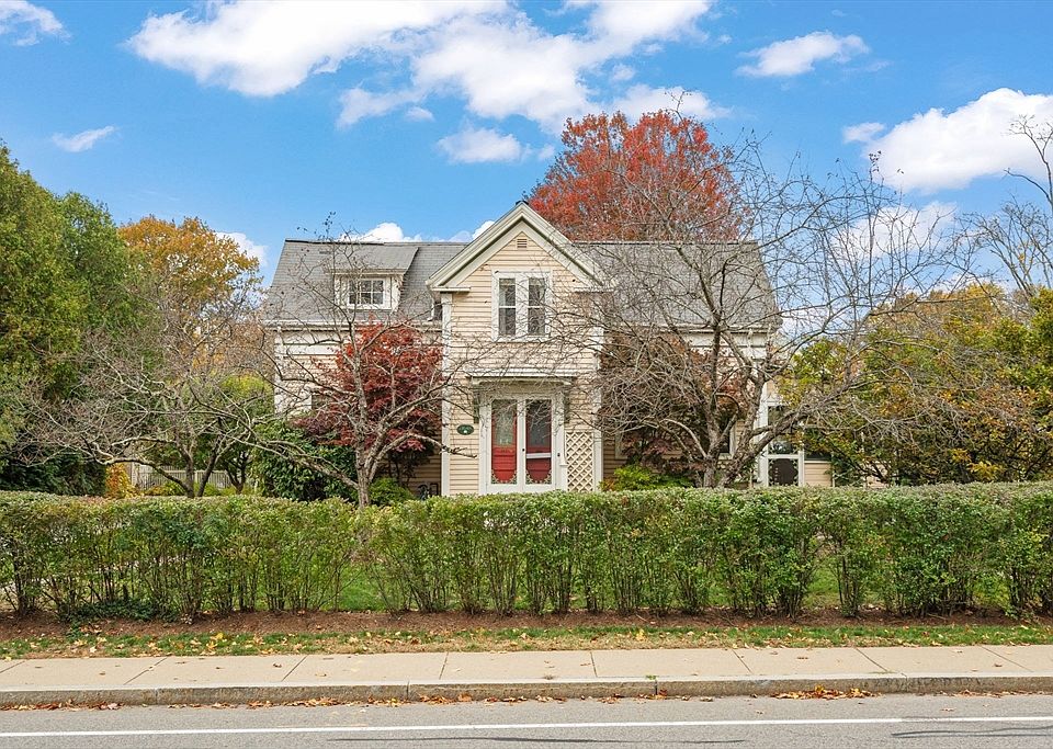 Nestled in this quintessential New England neighborhood, 167 Court Street was built c.1848 stands proudly as one of the original farmhouses in Precinct 1. This yellow clapboard four-bedroom, three-bathroom home has the charm of an older home with a sun filled open concept kitchen, family room, and dining room. The cozy living room has a gas fireplace and opens to a delightful, screened porch. The second floor of the main house consists of three bedrooms and two full baths including the principal en-suite bedroom with walk-through closet. There is a home office that leads to a large room over the garage which has served as a bedroom and/or recreation room. Enjoy entertaining or relaxing in the private partially fenced garden surrounded by mature plantings and perennial border gardens with bluestone terrace. The two-car attached garage has ample room for storage. A prime location, just blocks to the Dedham village center with shopping, dining, and cinema.