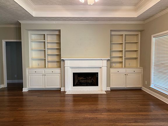 Two car garageTile around fireplaceLarge hall bathroomAdditional bedroomsAdditional parking padBuilt in bookshelvesLots of cabinet space