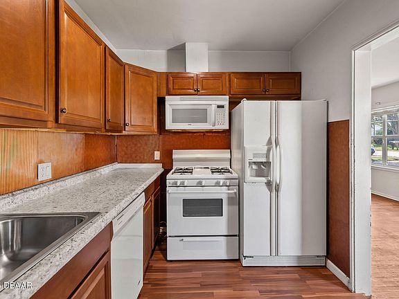 Own a piece of Daytona history with this 1942 home on a large lot with endless possibilities. The exterior has been beautifully updated with new siding, fresh paint, shutters, and landscaping for amazing curb appeal. Inside, the home retains its original hardwood floors and classic character and is ready for your personal touch, offering an exciting opportunity to customize and make it your own. The home features two bedrooms plus two flexible spaces. One has a private entrance and could be a home office, studio, or guest suite. The other is a bonus room between the bedrooms that could serve as a nursery, office or creative space. The kitchen has a gas stove and cooktop, electric water heater, plus an owned buried propane tank. A whole-house gas backup generator conveys (currently needs service). HVAC system has 2024 compressor and is serviced regularly. Energy efficiency is enhanced with a transferrable whole-house solar system, providing lower utility costs