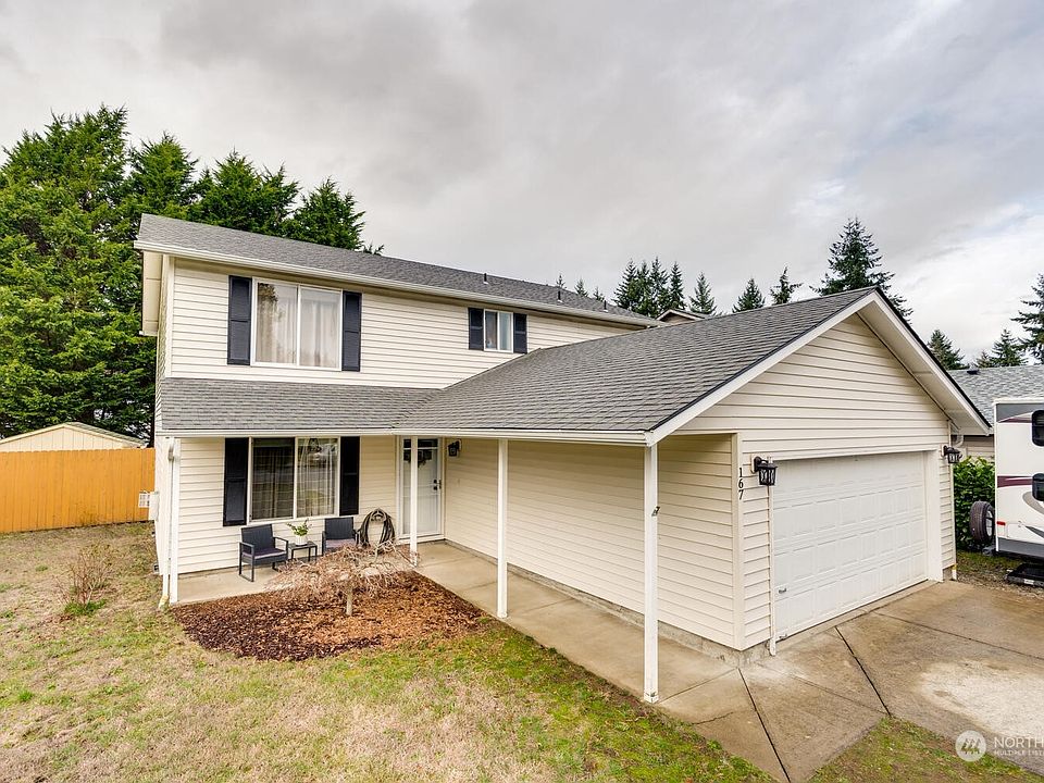Four bedroom home with living room & family room in convenient location with easy I-5 access! Interior completely updated. Downstairs-hardwood flooring and kitchen with quartz counters & stainless appliances done in last couple years. Upstairs you will find brand new carpet, paint, doors and trim. Updated lighting and vanities! Newer roof and mini-split. Primary bedroom with attached bath and new closets. Fenced backyard with patio, play structure & shed. Schedule a showing today!