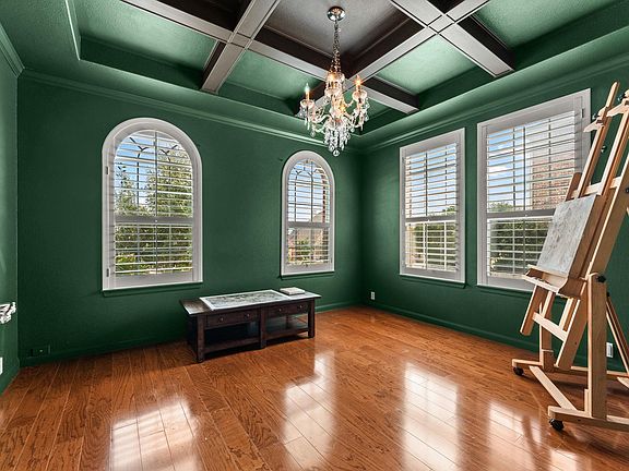 Stunning double-sided stone fireplaceSophisticated home officeStainless-steel appliancesSerene backyard oasisRecessed lightingFormal dining roomLush greenbelt lot
