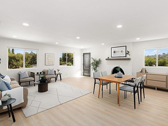 PRICE REDUCTION!! This stunning property, perched atop a hill in the vibrant Old Escondido neighborhood, has undergone a complete transformation, radiating energy and style. From the moment you set eyes on it, the brand-new exterior finishes and modern yet timeless style draw you in, setting the tone for what awaits inside. Step up to the gorgeous deck and take in the panoramic views right from your front door. Inside, a bright and open living space is designed for comfort and relaxation. Every window offers unobstructed views and lush greenery, bathing the space in natural light and tranquility. The fully-equipped kitchen is a chef's dream, featuring brand-new cabinetry, stainless steel appliances, and beautiful quartz countertops. Recessed LED lighting, a neutral color palette, and new LVP flooring flow seamlessly throughout the home, adding to its casual elegance. The primary bedroom suite is a restful sanctuary with its own expansive balcony overlooking the expertly landscaped backyard, complete with mature trees and convenient alley access. Every inch of this home has been thoughtfully upgraded, including fresh exterior and interior paint, a new deck and railing, a brand-new HVAC system, energy-efficient dual-pane vinyl windows, updated bathroom finishes and fixtures, a new tankless water heater, new baseboards, and new interior and exterior doors. Even the two-car garage has been fully refinished with dazzling epoxy flooring and a new insulated door. With all these custom upgrades, this property is a rare find and an opportunity not to be missed. Seize the chance to make this spectacular home your own – an invitation to live life with flair and excitement!