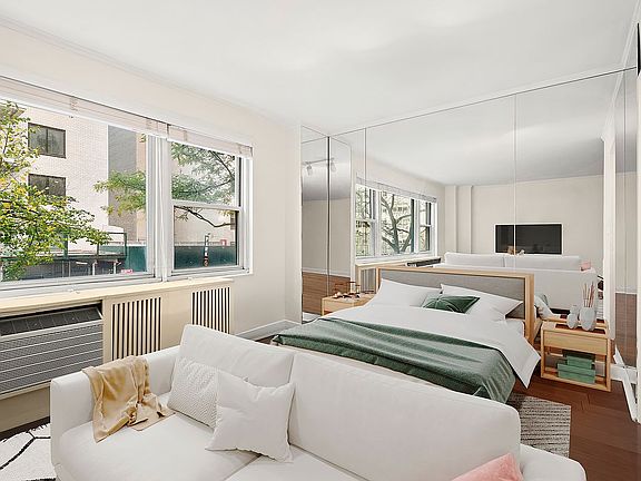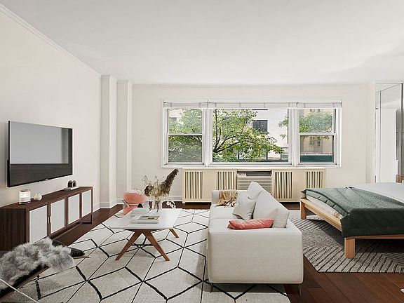 Welcome to 167 East 67th Street, Apt. 2B-a charming alcove studio ideally situated in the heart of the Upper East Side, mere blocks from Madison Avenue and Central Park. With serene tree-top views, this bright and airy studio offers a well-defined sleeping area, beautiful hardwood floors, and refined details like wainscoting and crown molding that add an elegant touch to the space.