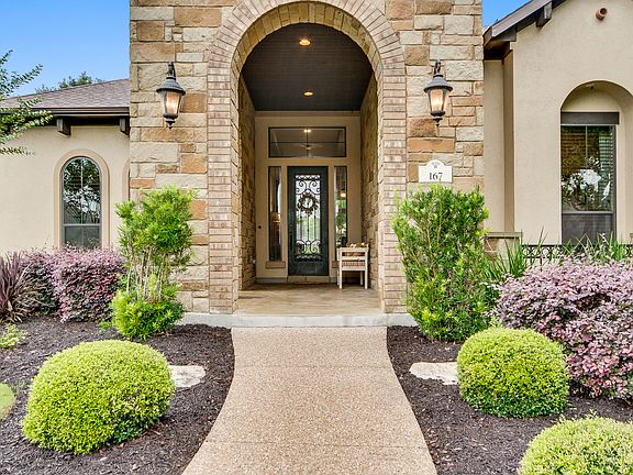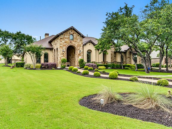 4 BD, 3 BA 3,353 SF home in coveted Estrella Crossing neighborhood of Georgetown. Built in 2013 As a model home for Partners in Building. Open floor plan includes living room with gorgeous stone fireplace/hearth. Kitchen built around large island with unique granite countertops, beautiful off-white custom cabinetry, stainless steel appliances, oversized pantry. Substantial bonus room with dry bar and wine refrigerator. Study with stunning woodwork. Hardwood floors throughout living areas, high-end tile work in bathrooms. As a trademark, Partners in Building installed breathtaking tray, vaulted and dome ceilings throughout, complimentary lighting fixtures recently installed. 3 car garage. Wooded 1-acre lot with a dog friendly, fenced in backyard. Huge covered patio with built-in grill leads out to the pool added in 2019.. HOA: $300/year.