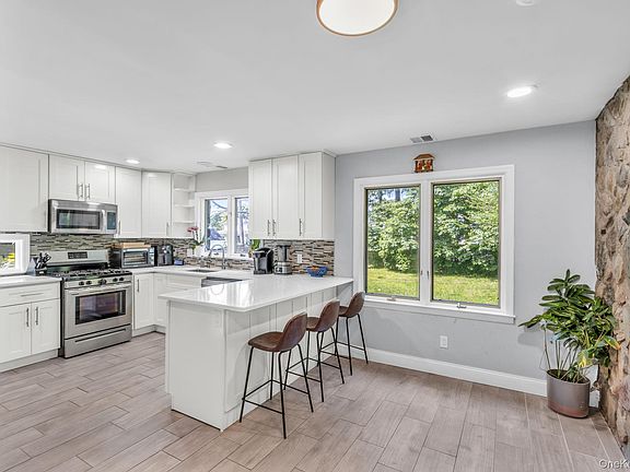 SUBURBAN PEACE AWAITS YOU in this large cape cod with updated kitchen, baths and more. Super large family room features loads of natural light, a fireplace, and a highly adaptable open-plan space. First floor also has a bedroom/bathroom combination that presents as a great mother-in-law suite. Upstairs you’ll enjoy a very large primary en suite, two other large bedrooms, and a modern shared bath. The two-car garage provides space for both vehicles and personal storage. And the large, fenced-in back yard leaves plenty of room for summer yard parties or pets to run around in. ROOF AND PRIMARY FURNACE ARE BOTH BRAND NEW! Home also features a Tesla charging station. Just minutes from primary highways, shopping, commuter buses and trains, and only 45 minutes drive from midtown Manhattan. Make your appointment today!!