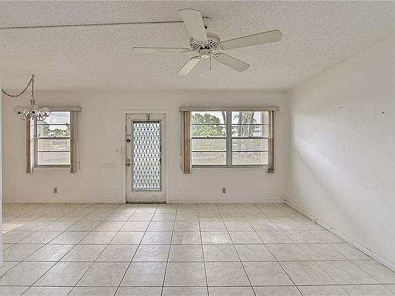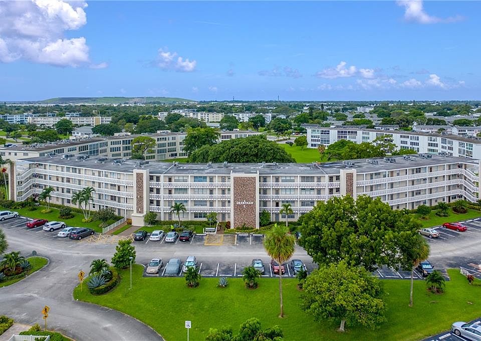 Super Convenient Ground Floor Unit in Great Condition. Spacious and Clean throughout, Bedrooms now have Tile. Large Screened-in-Patio with Wind Shutters for Protection provide Extra Space. Full Bathroom features a Walk-In Bathtub for Easy Access. New Air Conditioning unit and New Water Heater! Parking Spot is directly in front of unit. Grantham E is one of the Most Desirable Spots located in the Heart of Century Village. Only Steps to the Pool. Century Village is an Extremely Active 55+ Community offering Resort-Style Amenities: Cafe, Clubhouse, Tennis, Pickleball, Craft/Painting Workshops, Hobby Classes Fitness Centers, Free Movies, Free Shuttles