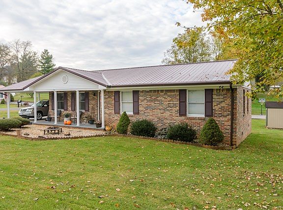 MOTIVATED SELLERS - BRICK RANCH ON CORNER LOT WITH LEVEL YARD! HOME HAS THREE GOOD-SIZED BEDROOMS, TWO FULL BATHS, LIVING ROOM, DINING ROOM WITH FRENCH DOOR TO REAR DECK, UPDATED KITCHEN WITH RAISED PANEL CABINETS, GRANITE COUNTER TOPS, STAINLESS APPLIANCES, NOOK WITH BREAKFAST BAR, PULL-OUT DRAWERS, CAST IRON SINK AND CERAMIC TILE FLOOR. REAR DECK SURROUNDS ABOVE GROUND POOL (30'). METAL ROOF WITH LIFETIME WARRANTY, ONE-CAR ATTACHED CARPORT OFFERS DIRECT ENTRY TO MUDROOM/UTILITY ROOM. HEAT PUMP HAS BEEN SERVICED ANNUALLY. LIVING ROOM HAS BRICK HEARTH WITH CHIMNEY FLUE. BOTH BATHS HAVE CERAMIC TILE FLOOR AND MASTER BATH HAS CERAMIC CUSTOM TILE SHOWER. INSULATED WINDOWS.