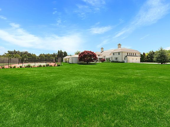This beautiful gated high-end Villa features 6 bedrooms, 9 baths, cathedral ceilings entrance and living room with wall to ceiling glass doors with automatic shades; formal dining room, extra-large gourmet kitchen with top-of-the-line appliances, several seating areas, large heated gunite pool, pool house, gym, and a finished basement. House has been just upgraded and refreshed and has an elevator for the three levels. Located on 2.7 park like acres including all-weather tennis court. Golf cart included for trips to private ocean beach. Available July 2026 for $200k