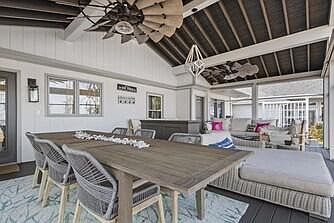 Enjoy unobstructed White Lake waterfront views from the spectacular 19 x 22' screened porch as well as inside the home. This is a coastal farmhouse style home with many amenities on a quiet private street shared by only seven homes with a private community pier, sheltered gathering place and sandy beach front. The home comes equipped with an outdoor grilling and dining area, firepit, hot tub, screened porch TV, fire table, high-end furniture, and includes a new Samsung washer/dryer and water filtration system. HOA covers lawn care. Buoy is available for your own jet ski or boat. No smoking and no pets of any kind allowed. This home is available for a short or long term lease. Tenant responsible for utilities (Duke Energy) and Water/Sewer/Trash (Town of White Lake), and owner pays internet and quarterly pest spray/termite service.
