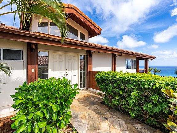 Spacious 5 bedroom 4 bath home on Maono Place, a quiet interior street, within prestigious Hawaii Loa Ridge. This home features a covered lanai with beautiful sweeping ocean views and sunsets. Upstairs also features a spacious living area, dining room, kitchen with breakfast room, and 2 bedrooms, 1 bath. Downstairs features the primary bedroom & bathroom which look out to a spacious lanai, 2 bedrooms each with their own ensuite, and a dedicated laundry room. This gated community features gated security, tennis courts, hiking trails, and club room.