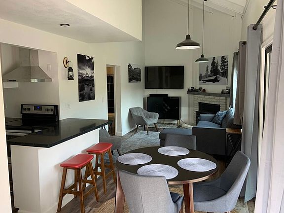 This studio and a loft is the perfect mountain home! With views of the Sherwins and plenty of extra space this is an ideal mountain condo. 2 bathrooms, 2 closets, newly updated kitchen and privacy from other neighbors. Other things include...pellet stove, wall heaters, private deck, fully furnished, all silverware and pots/pans, queen bed and queen fold out couch. Available as of November 1st as a 6 month lease initially with option to extend per month after that per approval of landlord.