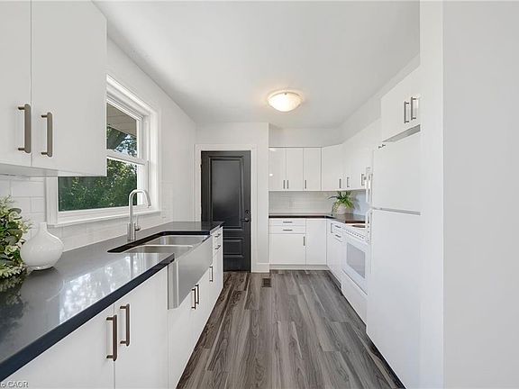 Welcome to your private retreat just seconds from city conveniences! Set on a beautifully treed 1.4-acre lot, this all-brick bungalow offers the perfect blend of peaceful country living and urban access. Surrounded by mature trees, this home provides a serene setting that feels miles away, while still being close to everything you need. The main floor features a modern kitchen, a bright and spacious dining area, and a large living room anchored by a stunning brick fireplace. With three generous bedrooms and a 4pc bathroom, there’s plenty of room for comfortable family living. Downstairs, the lower level is ideal for extended family and features a shared laundry area, two additional bedrooms, a second 4pc bathroom, a full kitchen, and a bright open-concept living/dining area complete with an egress window. The home includes two separate entrances, offering added flexibility and convenience. Whether you're seeking space to grow, room for guests, or a multigenerational setup, this property checks all the boxes. Don’t miss this rare opportunity to enjoy the best of both worlds, nature and convenience. Note* All appliances and fireplace are sold in “as is” condition.