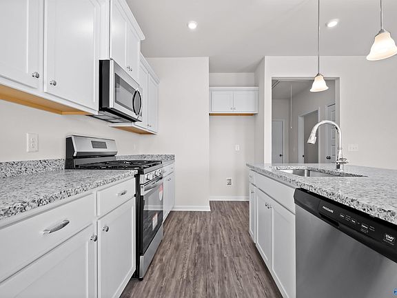 A ranch home with great curb appeal, The Landen makes efficient use of every space, maximizing the home's livability. Entering from the garage, homeowners will find a laundry room, pantry, and a flex space that can be personalized for your needs. The kitchen, with a center island that is great for keeping the chef involved, opens to the family room and dining area. The owner's suite is separated from the two secondary bedrooms and features a large walk-in closet and private bath.