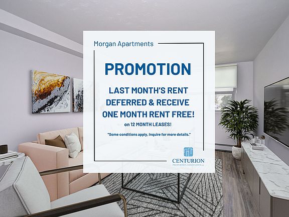 AboutWelcome to Morgan Apartments, ideally located in the vibrant heart of downtown Centreville. This elegant community offers spacious one, two, and three-bedroom suites, each designed with ample storage space for your convenience. Nestled at 167 Morgan Ave, near the intersection of King Street East and Fairway Road North, residents enjoy close proximity to major retail stores, delightful restaurants, banks, and schools. Experience the perfect blend of comfort and urban convenience at Morgan Apartments!PROMOTION: Last Month's rent Deferred and receive 1 month rent FREE! - On 12 Month leases! *Some conditions apply, please inquire for more details.*Looking for a future move-in date? Give us a call today to speak with one of our Customer Care Representatives to find out more.TOUR OPTIONS:In-personVirtual - To book a virtual tour, please call us to speak with one of our customer care agentsSuite offers: Laminate, ceramic, and carpet floorsBalconies in select suitesProperty offers:Pet friendly Outdoor parkingOnsite laundry room Secured entrances Dedicated onsite staff Your community offers:Easy access to public transport and Highway 401 via Highway 8Short distance to CF Fairview Park mallNearby grocery stores and restaurants Close to schools, parks, and community centresFees:*Hydro not included*Outdoor Parking: $50/monthDon't miss out on being one of our valued residents. Contact our Customer Care Centre to find out more details and schedule a viewing today! Suite images shown represent standard unit finishes, which may differ between units. Suite layout varies.Utilities IncludedHeatWater